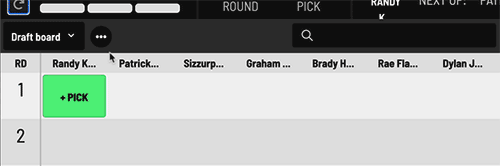 This includes the ability to "Skip Pick", "Edit Picks", make an "In-Draft trade", and "Team On the Fly". The "Team on the Fly" tool allows you to immediately change the current team picking. In an Auction draft, this area allows you to change the team nominating on the fly.